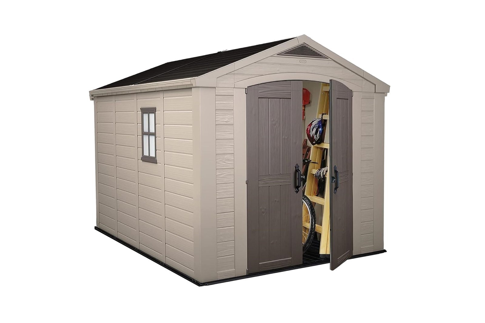 The largest capacity shed in the series, the Factor 8 x 11 includes a skylight, windows, floor and built in ventilation and is perfectly suited for the storage of bicycles, ride on mowers, motorbikes and more.