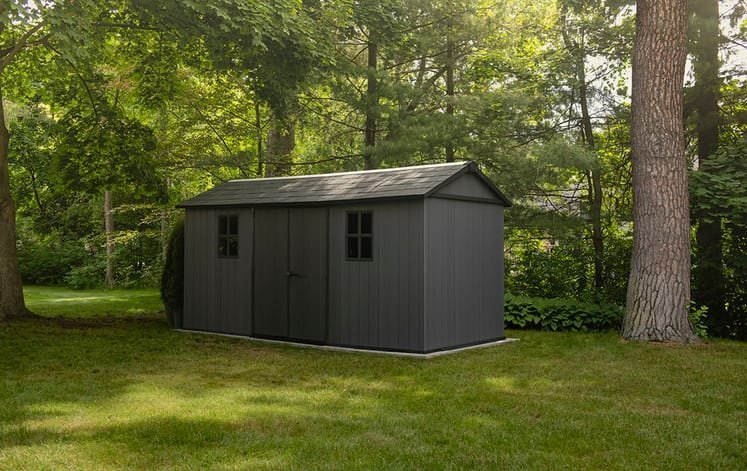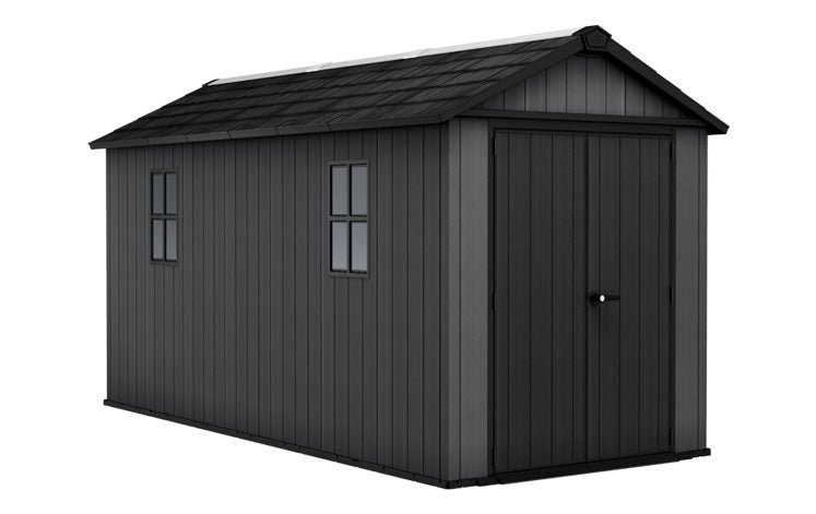 Enter the realm of supreme outdoor storage solutions with the Keter Newton Plus Shed 7.5 x 15ft. in sophisticated grey. Customizable to fit your unique needs, this outdoor storage shed’s modular design offers dual setup options, allowing you to tailor it precisely to your garden and storage requirements. Crafted with revolutionary Evotech+ panels, it combines the allure of natural wood with the resilience of resin—no maintenance required. With double-wide lockable doors providing easy access to your larger belongings, a raised floor, and strategically placed vents ensuring optimal airflow, the Newton Plus is meticulously engineered for convenience and durability.